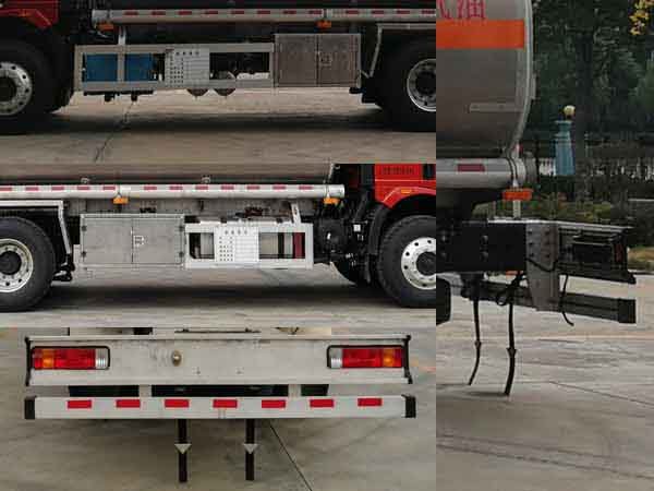 | 配置 | 1、該車適用于危險品運(yùn)輸,運(yùn)送危險貨物車輛類型為:FL型,類項號:3。運(yùn)輸介質(zhì):汽油,密度:700千克/立方米。罐體有效容積24.5立方米,罐體外形尺寸(長×寬×高)(mm):7200×2400×1750。整車外形長與采用軸距/后懸對應(yīng)關(guān)系為(mm):10110/4600+1350/2760,10110/4800+1350/2560。2、側(cè)、后防護(hù)材料均為鋁合金,螺栓連接;后防護(hù)截面尺寸(寬×高)(mm)60×120,下邊緣離地高500mm。3、隨底盤選裝高頂駕駛室,選裝前圍和燈具。僅選用排氣管前置、限速裝置(限速79km/h)、前輪盤式制動及子午線輪胎的底盤;安裝帶有衛(wèi)星定位功能的行駛記錄儀;ABS系統(tǒng)生產(chǎn)廠家:長春瑞立科密汽車電子有限公司,型號:CM4XL。采用發(fā)動機(jī)與油耗值對應(yīng)關(guān)系為(L/100km):CA6DK1-32E6/37.47,CA6DK1-28E6/37.47。 該車后軸為采用空氣懸架. | ||
