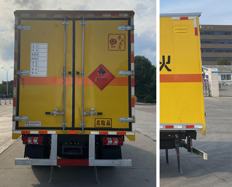 | 配置 | 1、該車適用于運輸危險品。廂體頂部封閉,不可開啟。類項號:2.1,2.2。2、側(cè),后防護材料均為Q235,螺栓連接;后防護截面尺寸φ100mm,下邊緣離地高450mm。選裝后部無尾板,選裝無尾板時,后防護材料為Q235,焊接,截面尺寸100×50mm,下邊緣離地高450mm。3、廂體側(cè)面選裝開門型式及位置,選裝不帶側(cè)開門,選裝瓦楞板結(jié)構(gòu);廂體側(cè)面板選裝開百葉窗。安裝帶有衛(wèi)星定位功能的行駛記錄。轉(zhuǎn)向輪安裝輪胎防爆應(yīng)急防護裝置。僅選用排氣管前置、限速裝置(限速80km/h)、前輪盤式制動及子午線輪胎的底盤..ABS型號/廠家為:CM4XL-4S/4M /廣州瑞立科密汽車電子股份有限公司,ABS型號/廠家:VIE ABS-Ⅱ/浙江萬安科技股份有限公司。發(fā)動機/油耗值(L/100Km)對應(yīng)關(guān)系為:WP2.3NQ130E61/10.83。該車型可選裝ETC車載裝置。液壓升降尾板收起狀態(tài)水平長度為280mm,尾板質(zhì)量為350kg。 | ||