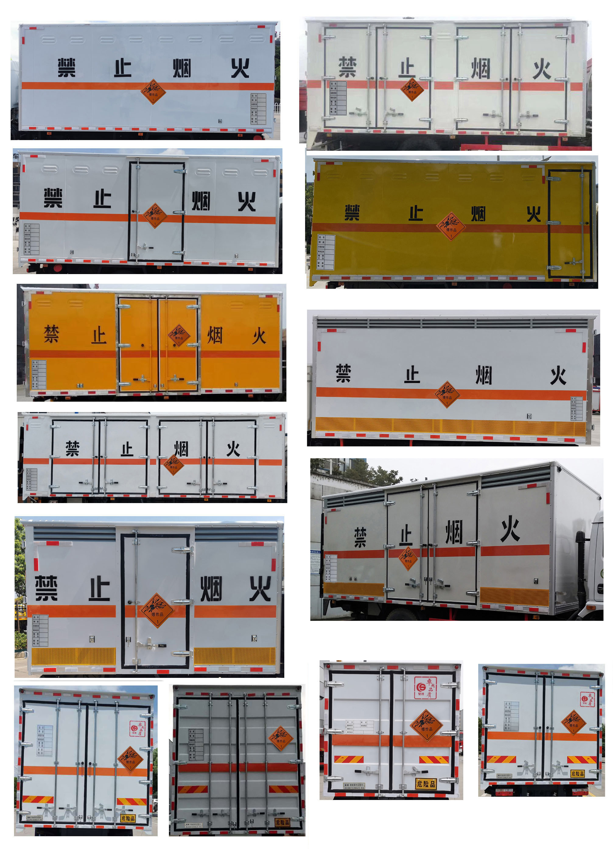 | 配置 | 1、該車適用于運(yùn)輸危險品。運(yùn)輸具有**容器(瓶)包裝的物品,EX/Ⅲ型車輛,危險貨物類項(xiàng)號:1.1B,1.1G,1.3C,1.1D,1.2D,1.3C,1.1C,1.4G。廂體頂部封閉不可開啟。2、側(cè)/后防護(hù)材料為Q235,側(cè)防護(hù)螺栓連接,后防護(hù)焊接,截面尺寸(mm)120×50,下邊緣離地高490mm。3、隨底盤選裝駕駛室前面罩,選裝側(cè)窗玻璃;駕駛室頂部中間三個裝飾燈為選裝件;前霧燈為選裝件;駕駛室前臉擾流罩為選裝件。僅選用排氣管前置、限速裝置(限速80km/h)、前輪盤式制動及子午線輪胎的底盤;轉(zhuǎn)向輪安裝輪胎爆胎應(yīng)急防護(hù)裝置。后軸采用空氣懸架。安裝帶有衛(wèi)星定位功能的行駛記錄儀,EBS型號/生產(chǎn)廠家:EBS3/威伯科(上海)管理有限公司。發(fā)動機(jī)與油耗值(L/100Km)對應(yīng)關(guān)系為: B6.2NS6B210/26.5,DDi50E190-60/23.9。整車外形長/軸距/前懸/后懸的對應(yīng)關(guān)系為(mm):8650/4700/1430/2520,9050/5000/1430/2620,9250/5000/1430/2820,10000/5800/1430/2770。4、該車型可選裝ETC車載裝置。廂體側(cè)面選裝開門型式及位置,選裝不帶側(cè)開門,選裝瓦楞板結(jié)構(gòu);廂體側(cè)面板選裝開百葉窗。 | ||