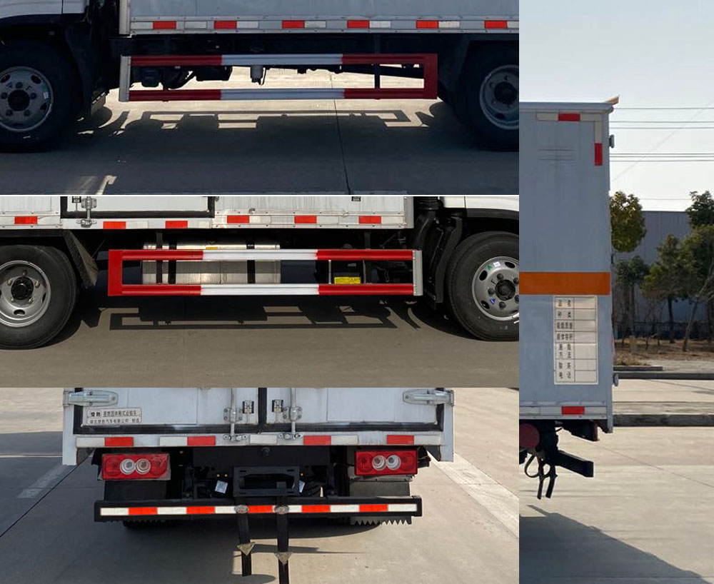 | 配置 | 該車為危險(xiǎn)品運(yùn)輸車,運(yùn)輸具有**容器(瓶)包裝的物品,運(yùn)送危險(xiǎn)物品類項(xiàng)號(hào):4.1,4.2,4.3。廂體頂部封閉,不可開啟。側(cè)后防護(hù)材料均為Q235,螺栓連接,后防護(hù)截面尺寸(mm)100×50,下邊緣離地高450mm。選裝后部尾板,選裝后部尾板時(shí)后防護(hù)材料為Q235,螺栓連接,截面尺寸(mm)φ100,下邊緣離地高450mm。廂體選裝側(cè)開門及位置或無側(cè)門、選裝后門雙拉桿,廂體選裝瓦楞板結(jié)構(gòu),選裝百葉窗。僅選用排氣管前置、限速裝置(限速80km/h)、前輪盤式制動(dòng)及子午線輪胎的底盤;轉(zhuǎn)向輪裝備輪胎爆胎應(yīng)急防護(hù)裝置。安裝帶有衛(wèi)星定位功能的行駛記錄儀。ABS型號(hào)/生產(chǎn)廠家:ABS-E/威伯科汽車**系統(tǒng)(**)有限公司,ABS-VI·E/廣州瑞立科密汽車電子股份有限公司,YF8/武漢元豐汽車電控系統(tǒng)有限公司。發(fā)動(dòng)機(jī)/油耗值(L/100Km)對(duì)應(yīng)關(guān)系為: F2.8NS6B131/11.47,Q28-130E60/11.02。尾板收起狀態(tài)水平長(zhǎng)度為280mm,尾板質(zhì)量為350kg。選裝ETC。 | ||