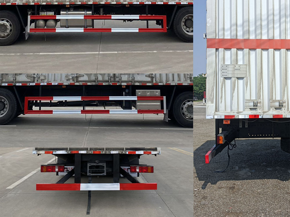 | 其它: | 1、該車為危險品運輸車.運輸具有獨立容器(瓶)包裝的易燃液體物品.運送危險物品類項號:3類.廂體頂部封閉不可開啟.2、側(cè)、后防護材料均為Q235,焊接;后防護截面尺寸(mm)120×50,下邊緣離地高490mm。廂體側(cè)面選裝開門型式及位置,選裝不帶側(cè)開門,選裝貨廂平面或瓦楞結(jié)構(gòu);廂體側(cè)面選裝開百葉窗,選裝后部樣式。3、僅選用1800+5600mm軸距,僅選用排氣管前置、限速裝置(限速80km/h)、前輪盤式制動及子午線輪胎的底盤,轉(zhuǎn)向輪安裝輪胎爆胎應急防護裝置,后軸采用空氣懸架,安裝帶有衛(wèi)星定位功能的行駛記錄儀,隨底盤選裝駕駛室,選裝前部燈具,選裝ETC。EBS型號/廠家:EBS3/威伯科(上海)管理有限公司。發(fā)動機/油耗值(L/100km)對應關系為:MC07H.35-60/32.45,MC07.31-60/32.43,MC07.27-60/32.43,MC07.25-60/32.43,WP7H270E62/32.15,WP7H245E62/32.15,WP7H220E62/32.15,WP7H320E62/32.60,WP7H300E62/32.60。 | ||
