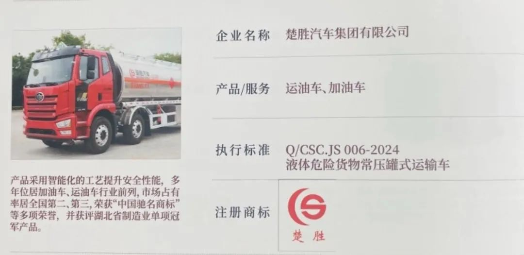2025年4月9日,湖北省“湖北精品”認(rèn)定榜單正式發(fā)布!楚勝汽車集團自主研發(fā)的加油車、運油車系列產(chǎn)品,歷經(jīng)技術(shù)先進性、質(zhì)量穩(wěn)定性、市場認(rèn)可度、品牌影響力四重嚴(yán)苛考核,從全省制造業(yè)優(yōu)品中脫穎而出,成功獲此省級質(zhì)量標(biāo)桿認(rèn)證!這一榮譽不僅彰顯了楚勝在專用車領(lǐng)域的技術(shù)制高點地位,更以權(quán)威背書印證了“中國質(zhì)造”的硬核實力!