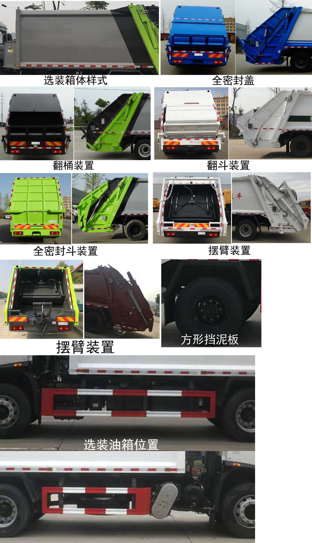 | 配置 | 1、該車主要專用裝置由箱體、壓縮系統(tǒng)組成,用于垃圾的收集與清運(yùn)。該車可選裝方形或弧形箱體,選裝全密封蓋裝置,選裝方形擋泥板,選裝后部工作裝置,選裝側(cè)防護(hù)樣式。選裝工作裝置時(shí)外形長/前懸/軸距/后伸對應(yīng)關(guān)系為(mm):①無上料裝置:8670/1400/4500/-;8700/1430/4500/-;8870/1400/4700/-;8900/1430/4700/-;②全密封斗裝置和擺臂裝置:8870/1400/4500/200;8900/1430/4500/200;9070/1400/4700/200;9100/1430/4700/200;③翻桶裝置和翻斗裝置:9070/1400/4500/400;9100/1430/4500/400;9270/1400/4700/400;9300/1430/4700/400。僅采用4500mm,4700mm軸距。2、側(cè)防護(hù)采用冷彎型鋼/Q235,螺栓連接;后防護(hù)由專用裝置替代,下邊緣離地高:500mm。3、隨底盤選裝高度不同的駕駛室;選裝前霧燈;選裝駕駛室頂部裝飾燈;選裝駕駛室前面罩;選裝前保險(xiǎn)杠及前部燈具,駕駛室前臉擾流罩為選裝件;駕駛室臥鋪側(cè)窗選裝裝飾板;選裝油箱安裝位置,選裝踏步結(jié)構(gòu)。安裝帶有衛(wèi)星定位功能的行駛記錄儀。ABS型號/生產(chǎn)廠家:3631010-C2000/東科克諾爾商用車制動(dòng)系統(tǒng)(十堰)有限公司,ABS 8/東科克諾爾商用車制動(dòng)系統(tǒng)(十堰)有限公司, 4460046450/威伯科汽車**系統(tǒng)(**)有限公司。采用的發(fā)動(dòng)機(jī)與油耗值對應(yīng)關(guān)系為(L/100Km):DDi50E190-60/23.9,D4.5NS6B190/24.4,D6.7NS6B230/23.7,B6.2NS6B210/23.8,B6.2NS6B230/23.8。 | ||