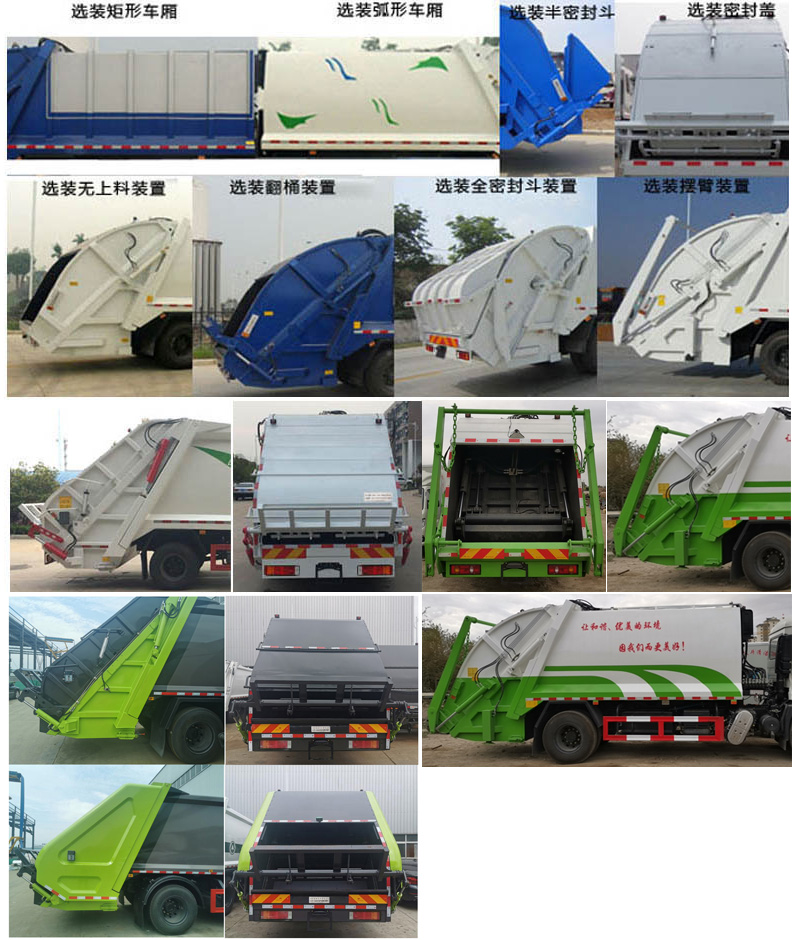 其它 | 1、該車主要專用裝置由箱體、壓縮系統(tǒng)組成,用于垃圾的收集與清運(yùn)。該車可選裝方形或弧形箱體,選裝全密封蓋裝置,選裝方形擋泥板,選裝側(cè)防護(hù)連接結(jié)構(gòu)件,選裝側(cè)防護(hù)樣式。選裝后部工作裝置。選裝多路閥位置,液壓油箱位置。選裝爬梯樣式;選裝工作裝置時(shí)外形長(zhǎng)/前懸/軸距/后伸對(duì)應(yīng)關(guān)系為(mm):①無上料裝置:8680/1400/4500/-,8710/1430/4500/-,8880/1400/4700/-,8910/1430/4700/- ;②全密封斗裝置和擺臂裝置:8880/1400/4500/200,8910/1430/4500/200,9080/1400/4700/200,9110/1430/4700/200;③翻桶裝置和翻斗裝置:9080/1400/4500/400,9110/1430/4500/400,9280/1400/4700/400,9310/1430/4700/400。僅采用4500mm,4700mm軸距。2、側(cè)防護(hù)采用冷彎型鋼/Q235,螺栓連接;后防護(hù)由專用裝置替代,下邊緣離地高:500mm。3、隨底盤選裝選裝高度不同的駕駛室;選裝前霧燈;選裝駕駛室頂部裝飾燈;選裝駕駛室前面罩;選裝前保險(xiǎn)杠及前部燈具,選裝后視鏡;選裝后部燈具;選裝駕駛室前臉擾流罩;駕駛室臥鋪側(cè)窗選裝裝飾板,選裝后背式排氣管。安裝帶有衛(wèi)星定位功能的行駛記錄儀。ABS型號(hào)/生產(chǎn)廠家:3631010-C2000/東科克諾爾商用車制動(dòng)系統(tǒng)(十堰)有限公司,ABS 8/東科克諾爾商用車制動(dòng)系統(tǒng)(十堰)有限公司, 4460046450/威伯科汽車控制系統(tǒng)(中國(guó))有限公司,J ABS/焦作博瑞克控制技術(shù)有限公司。采用的發(fā)動(dòng)機(jī)與油耗值對(duì)應(yīng)關(guān)系為(L/100Km):DDi50E190-60/23.9,D4.5NS6B190/24.4,D6.7NS6B230/23.7,B6.2NS6B210/23.8,B6.2NS6B230/23.8。隨底盤選裝油箱位置。選裝箱體樣式,填裝器樣式。隨底盤選裝后處理、電瓶、尿素罐、備胎安裝位置。選裝油管布局. | ||